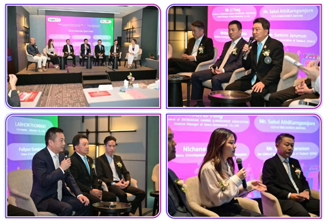 圓桌研討會上,中山市游戲游藝行業(yè)協(xié)會會長、廣東金馬游樂股份有限公司總經(jīng)理李勇、泰國臺球協(xié)會會長Mr.Suntorn Jarumon、MACROMOS AIRSTAR首席執(zhí)行官Mr.Sakol AthiKarnGumJorn、Solid enterprise業(yè)務(wù)發(fā)展主管Ms.Nichanan Tantasirin、Gabenate Co., Ltd.聯(lián)合創(chuàng)始人Mr.Labhon Thomnao、TON Praram3品牌創(chuàng)始人 Mr.Palipon Sombun等嘉賓圍繞“體育商業(yè)經(jīng)濟助力下泰國旅游娛樂的未來”主題展開深度對話。各方觀點碰撞交融,為產(chǎn)業(yè)發(fā)展提供了兼具前瞻性與實操性的思路建議。