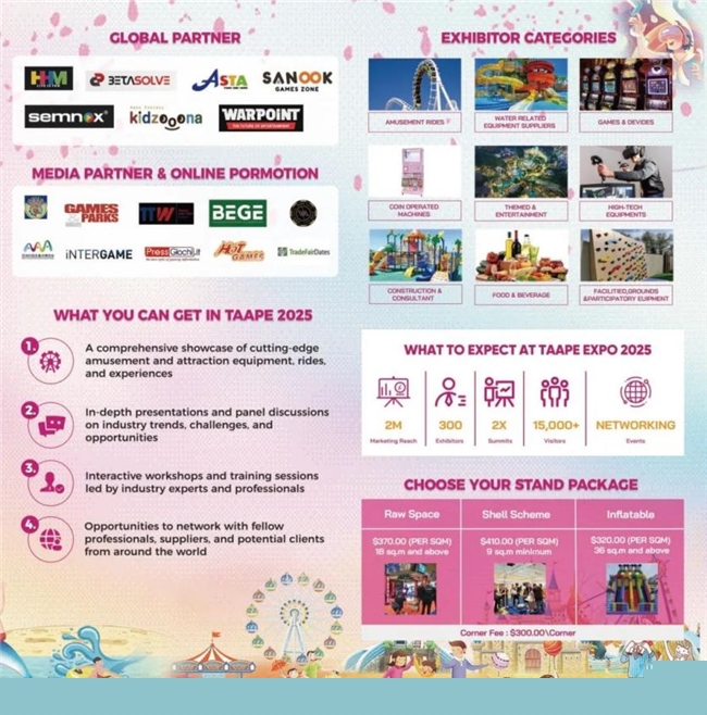 由中國(guó)動(dòng)漫集團(tuán)有限公司、泰國(guó)COMPASS集團(tuán)、廣東鴻威會(huì)展集團(tuán)聯(lián)合主辦的2025泰國(guó)文化用品、旅游裝備及景區(qū)游樂(lè)設(shè)施博覽會(huì)(TAAPE2025)是泰國(guó)知名游樂(lè)休閑類展會(huì)。該展會(huì)設(shè)立了水上裝備、游樂(lè)設(shè)施、戶外游樂(lè)、電子游樂(lè)設(shè)備等多個(gè)主題,展出內(nèi)容豐富多樣,包括IP授權(quán)與合作展區(qū)、衍生品設(shè)計(jì)與制造展區(qū)、手辦與模型展區(qū)等多個(gè)展區(qū)。此次展會(huì)恰逢中泰建交50周年重要?dú)v史時(shí)刻,依托泰國(guó)作為東盟樞紐的區(qū)位優(yōu)勢(shì),創(chuàng)新性地將傳統(tǒng)文化用品、旅游裝備與前沿元宇宙技術(shù)相結(jié)合,打造了全方位、多層次的文化貿(mào)易交流平臺(tái)。