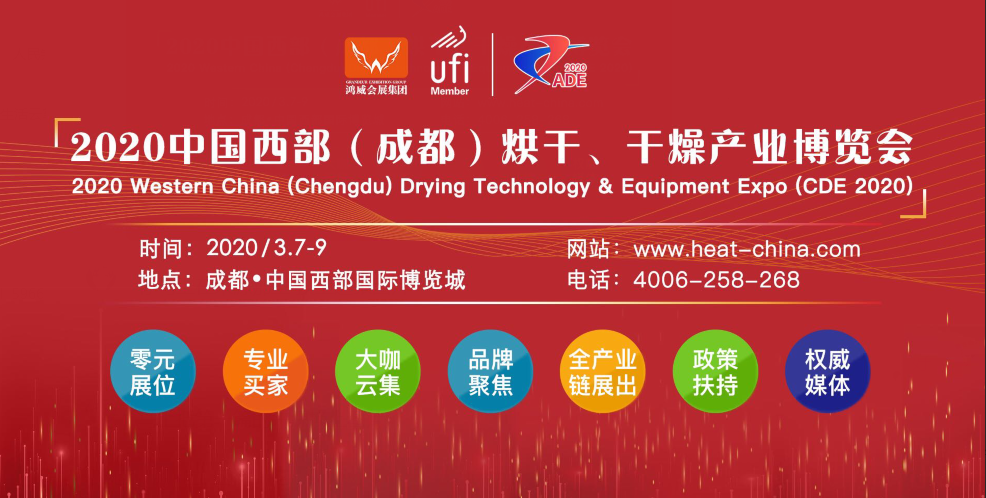 干燥過(guò)程幾乎涉及國(guó)民經(jīng)濟(jì)的所有部門(mén),廣泛應(yīng)用于生產(chǎn)和生活中,隨著我國(guó)經(jīng)濟(jì)的快速發(fā)展,各行業(yè)對(duì)干燥設(shè)備需求長(zhǎng)期保持穩(wěn)步增長(zhǎng),為了進(jìn)一步提升烘干、干燥設(shè)備的創(chuàng)新、技術(shù)、工藝、節(jié)能、智能與集成化,促進(jìn)產(chǎn)業(yè)的有序健康發(fā)展,由廣東省節(jié)能協(xié)會(huì)、廣東鴻威國(guó)際會(huì)展集團(tuán)等聯(lián)合舉辦的2020中國(guó)西部(成都)烘干、干燥產(chǎn)業(yè)博覽會(huì)(以下簡(jiǎn)稱西部干燥展)將于2020年3月7-9日在中國(guó)西部國(guó)際博覽城盛大召開(kāi)!