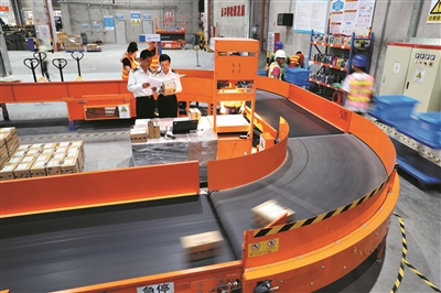 廣州海關(guān)所屬南沙海關(guān)關(guān)員在南沙保稅港區(qū)的跨境電商倉庫巡倉監(jiān)管。