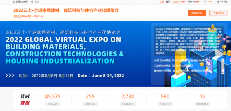 作為廣東省“粵貿(mào)全球”系列展會之一的2022云上·全球家居建材、建筑科技與住宅產(chǎn)業(yè)化博覽會,以打造“粵貿(mào)全球”品牌為己任,開展首日聚集255家家居建材、建筑科技與住宅企業(yè),全球85517人次(數(shù)據(jù)統(tǒng)計截止至6.8下午17時)云上實時觀展,集中展示智能家居、家居門窗、陶瓷、衛(wèi)浴廚電、建筑材料、定制家居、家居配套服務(wù)等領(lǐng)域企業(yè)的尖端技術(shù)、熱門產(chǎn)品、解決方案,全方位展示“粵企”實力,多角度體現(xiàn)“粵貨”魅力。
