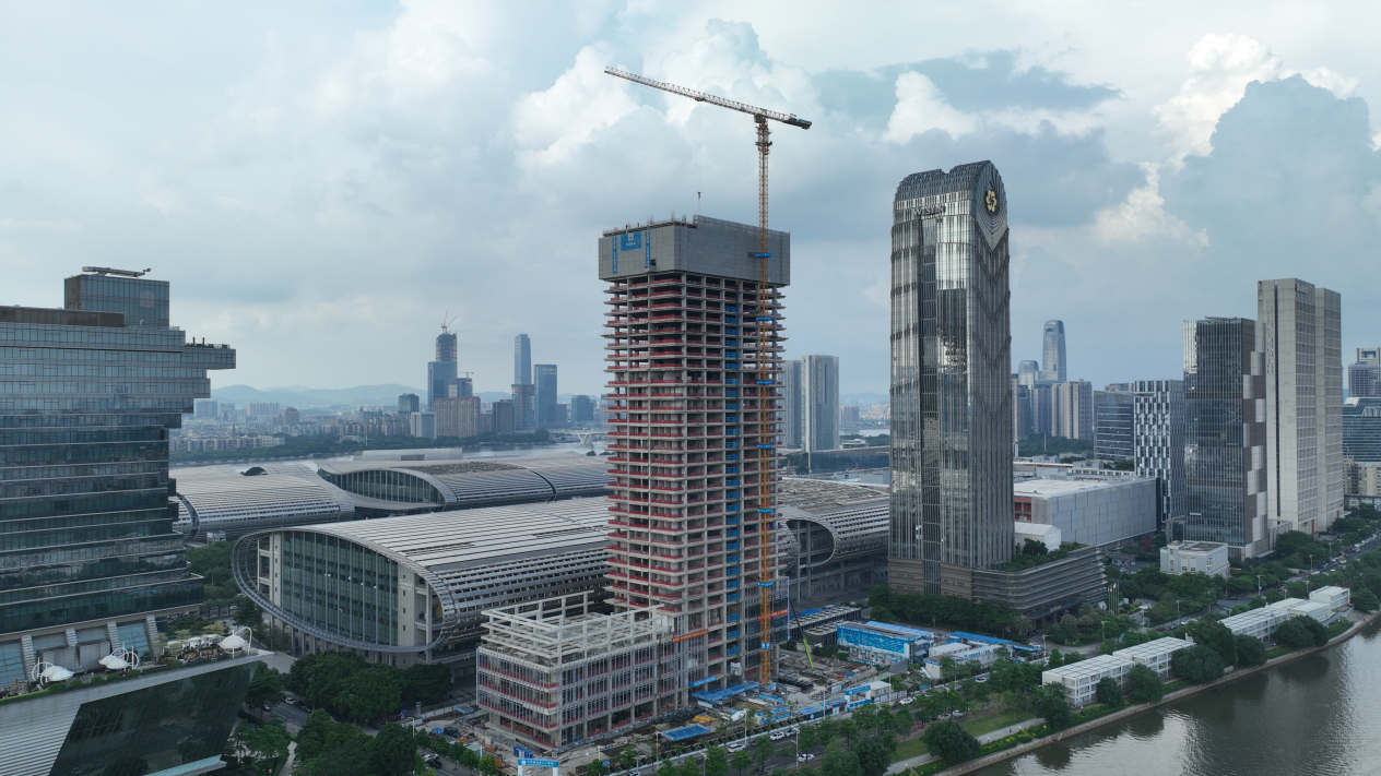 廣交會展館四期項目于2020年12月正式開工建設(shè),是廣交會展館發(fā)展史上最大的擴建工程,包含D區(qū)展館、會議中心和指揮中心。指揮中心由1棟171.9米高的塔樓和4層裙樓組成,是集會議承接與日常辦公于一體的超高層建筑,既能滿足會展產(chǎn)業(yè)鏈個性化辦公需求,也可為會展活動提供高效便捷的會議服務(wù)。