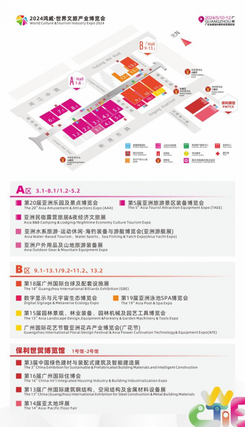 2024鴻威·世界文旅產(chǎn)業(yè)博覽會(huì)將于5月10-12日在廣州·中國進(jìn)出口商品交易會(huì)展館舉辦:展覽面積達(dá)24.7萬平方米,AB區(qū)聯(lián)動(dòng),參展企業(yè)近4000家,將吸引20萬觀眾參與。本屆博覽會(huì)分設(shè)游樂文旅、數(shù)字文旅、康養(yǎng)文旅、景觀文旅、休閑文旅、水系文旅六大版塊,展覽范圍包括游戲游藝、主題公園、室內(nèi)樂園、景區(qū)裝備、文旅科技、夜游演藝、民宿/旅居/露營、旅游車船/運(yùn)動(dòng)休閑車、泳池SPA、元宇宙、AR/VR、數(shù)字顯示、數(shù)字體育、園林景觀、花卉園藝、水上運(yùn)動(dòng)休閑用品/海釣裝備/游艇、臺(tái)球及配套設(shè)施等,所涉細(xì)分領(lǐng)域涵蓋60%以上的文旅產(chǎn)業(yè)。博覽會(huì)同期舉辦2024世界文旅大會(huì)等30多場(chǎng)會(huì)議論壇活動(dòng),匯聚100+頂級(jí)重磅嘉賓、300+行業(yè)主管單位及相關(guān)機(jī)構(gòu)代表/企業(yè)負(fù)責(zé)人代表、2000+文旅從業(yè)者、2000萬+線上觀眾傾情參與,線下將吸引2萬+專業(yè)觀眾參會(huì),致力匯聚全球智慧,共謀產(chǎn)業(yè)繁榮。